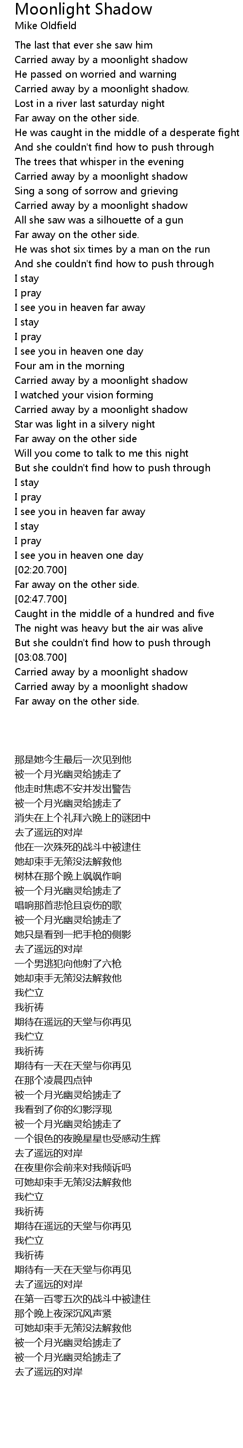 Carried away by a moonlight shadow |