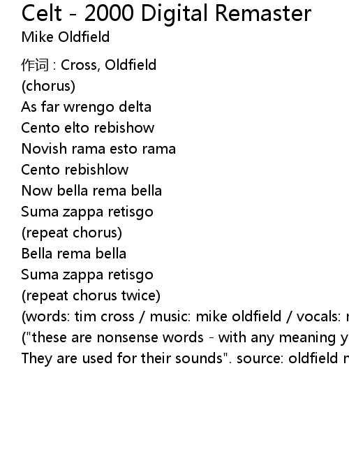 | 歌曲 | Celt - 2000 Digital Remaster |