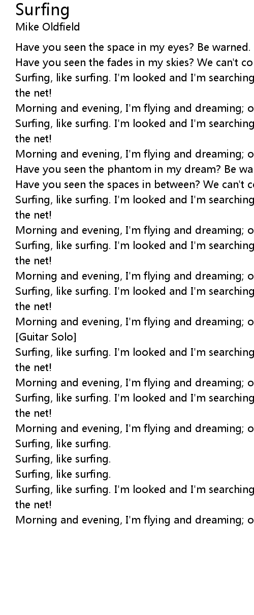Surfing, like surfing. I'm looked and I'm searching. I've fallen out right into the net!
