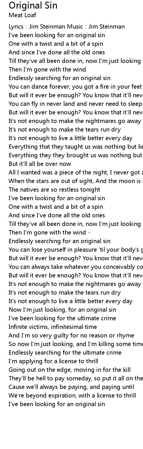 Now I' m just looking, for an original sin