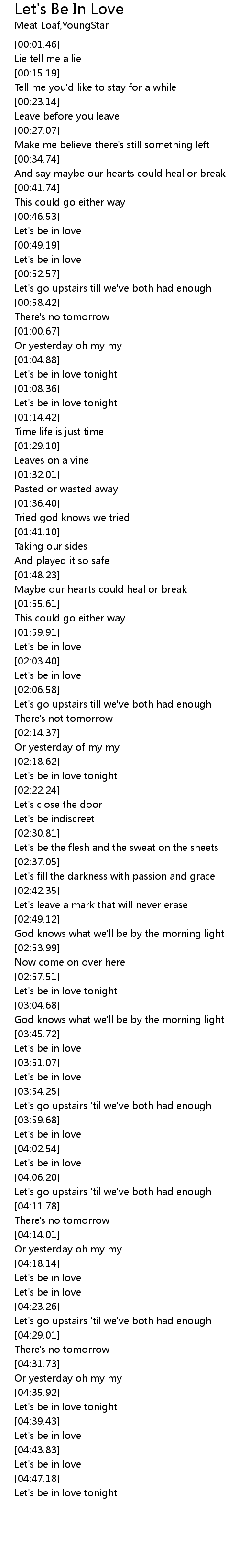 | [04:24.44] | Let's go upstairs 'til we've both had enough |