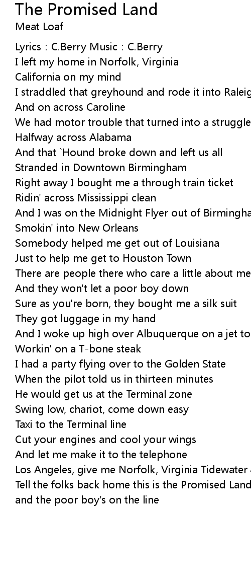 | Tell the folks back home this is the Promised Land callin' | |
