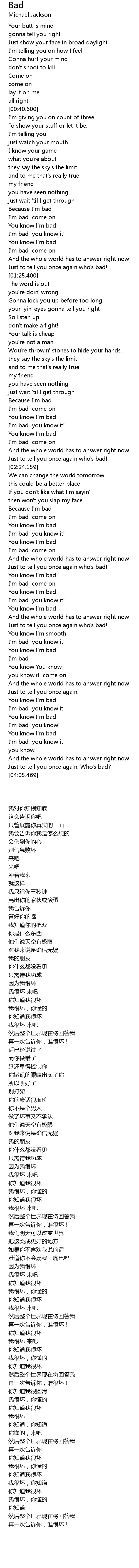 | [03:12.409] | Just to tell you once again who's bad! |