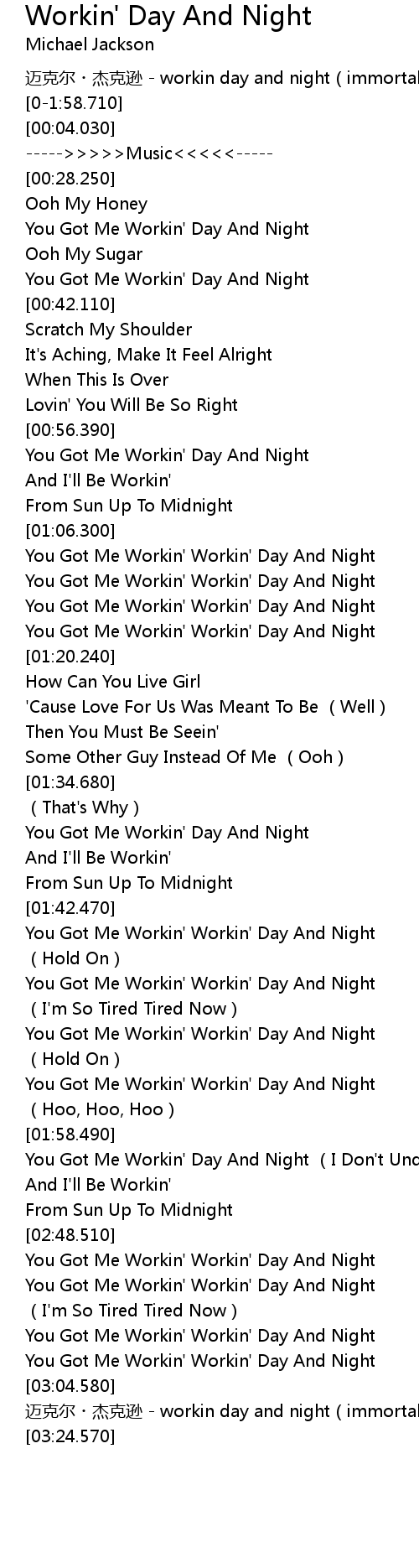 | [03:00.040] | You Got Me Workin' Workin' Day And Night |