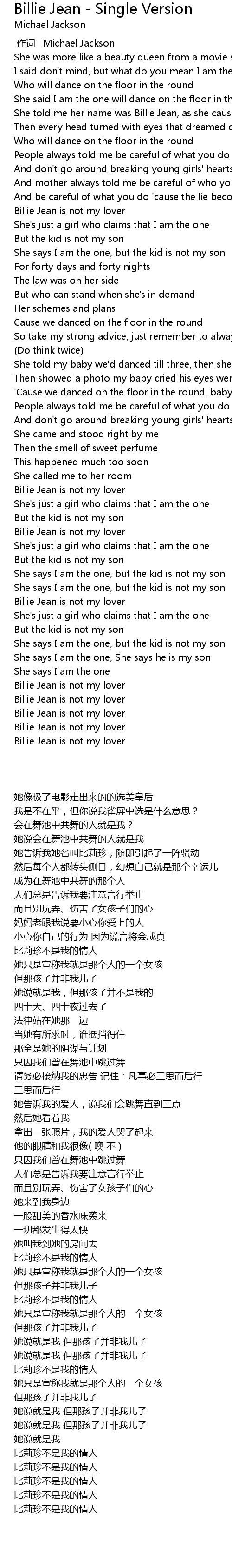 | [00:54.310] | She told me her name was Billie Jean, as she caused a scene |