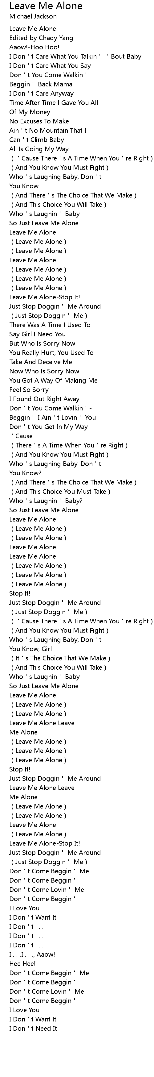 | [01:23.47] | Leave Me Alone-Stop It! |