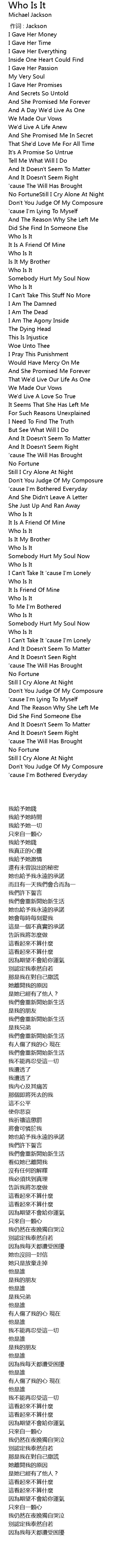 | 歌曲 | Who Is It |
