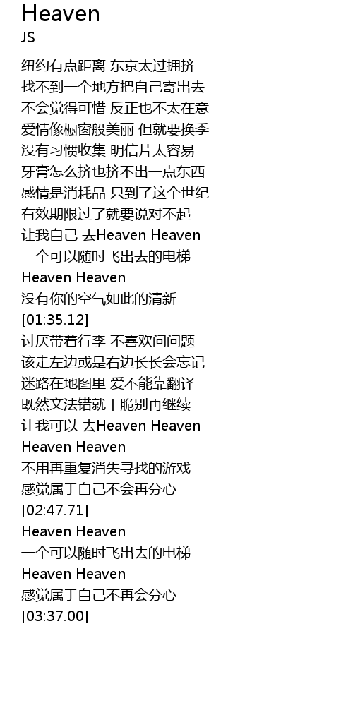 | [02:21.45] | ràng wǒ kě yǐ qù Heaven Heaven |
