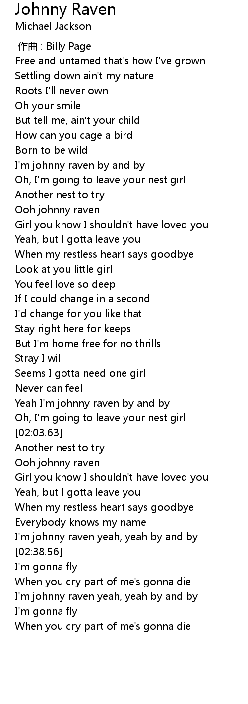 | [02:30.43] | I' m johnny raven yeah, yeah by and by |
