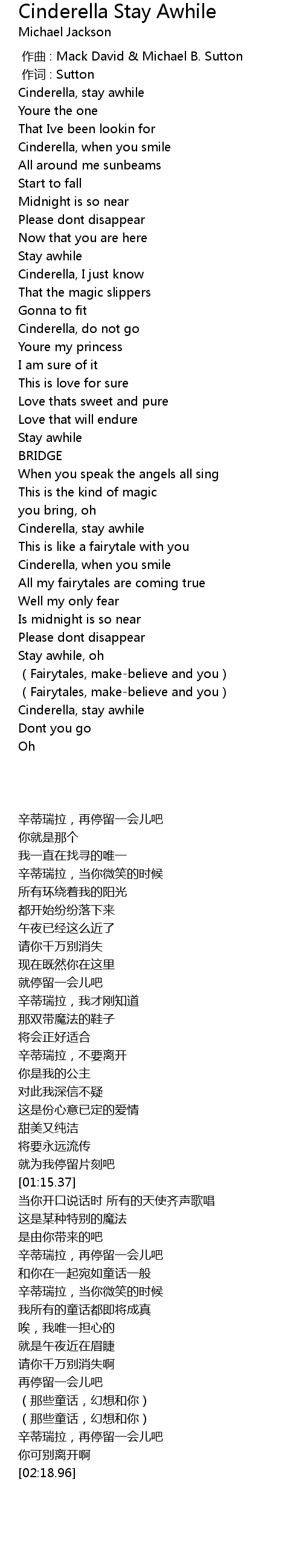 | [00:15.64] | 辛蒂瑞拉,再停留一会儿吧 |