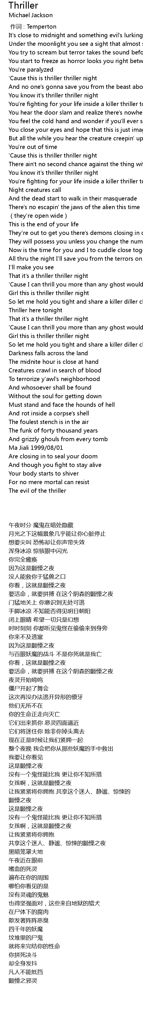 | [01:29.630] | 'Cause this is thriller thriller night |