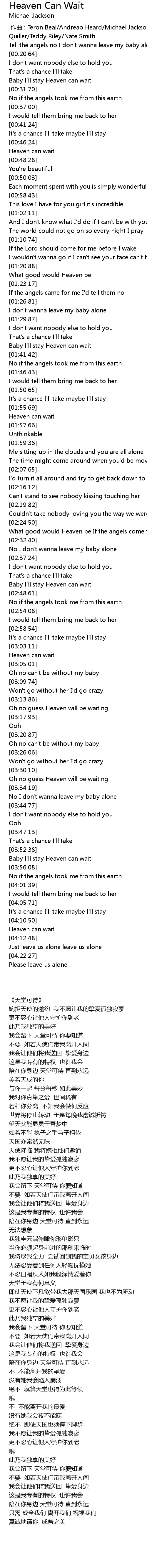 | [00:47.01] | Heaven can wait |