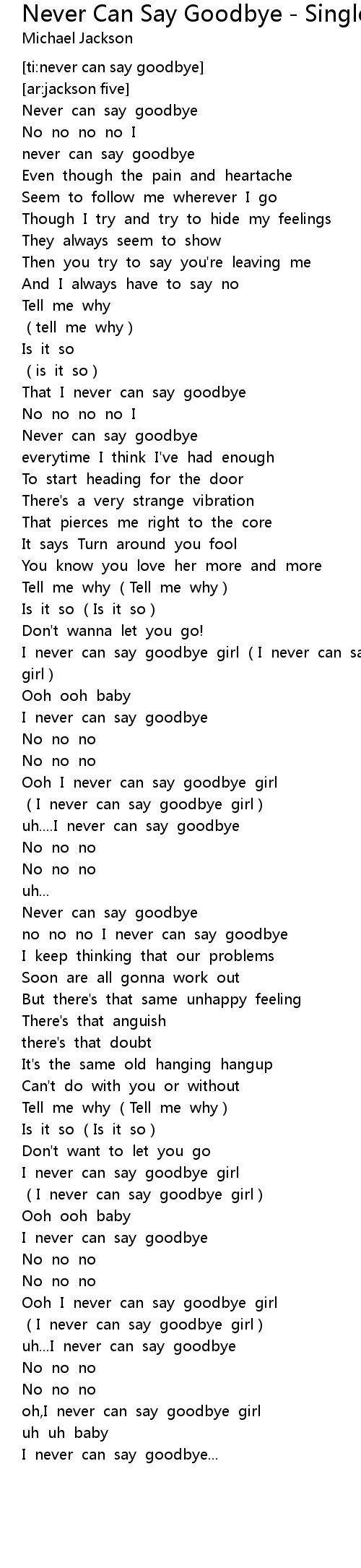 | [ti:never can say goodbye] | |