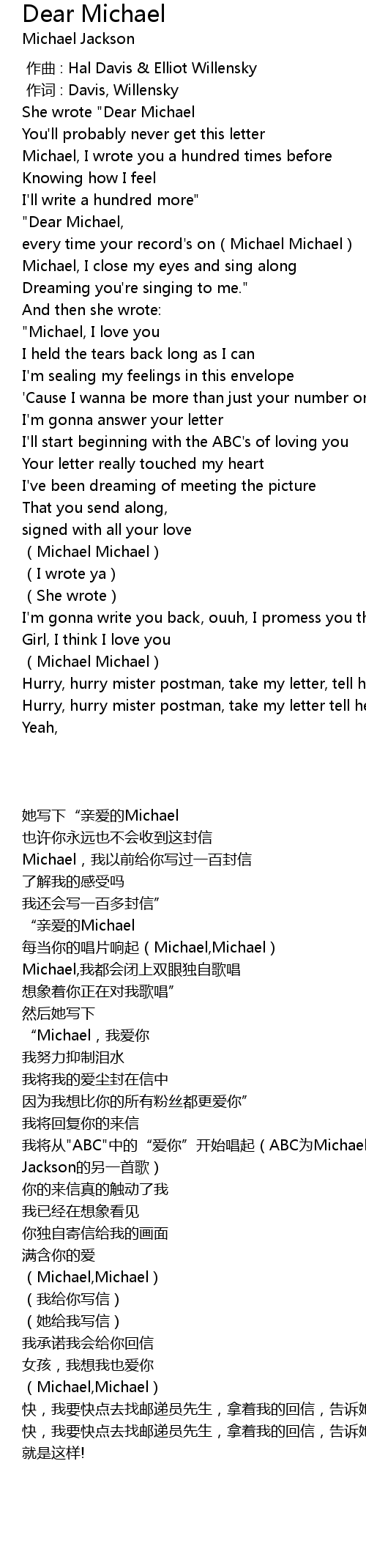 | [00:11.06] | Michael,我以前给你写过一百封信 |