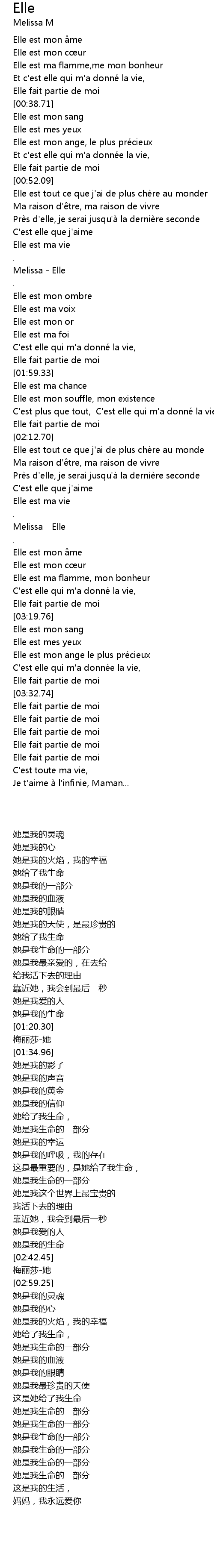 | [01:24.90] | Melissa - Elle |
