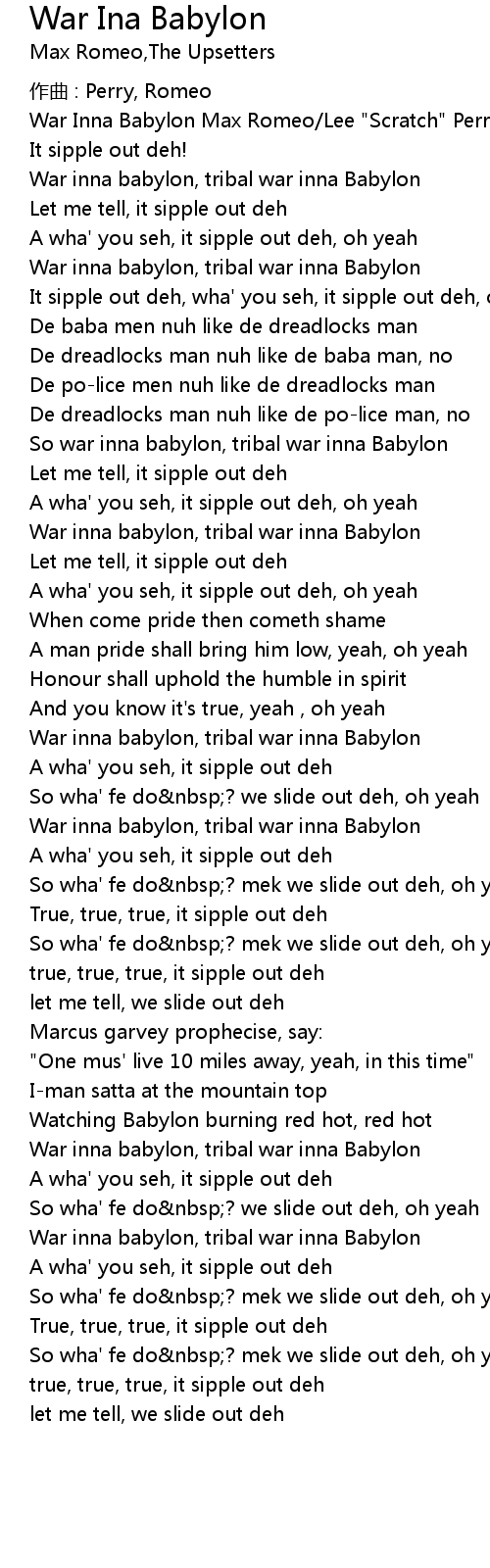 | War Inna Babylon Max Romeo Lee " Scratch" Perry | |