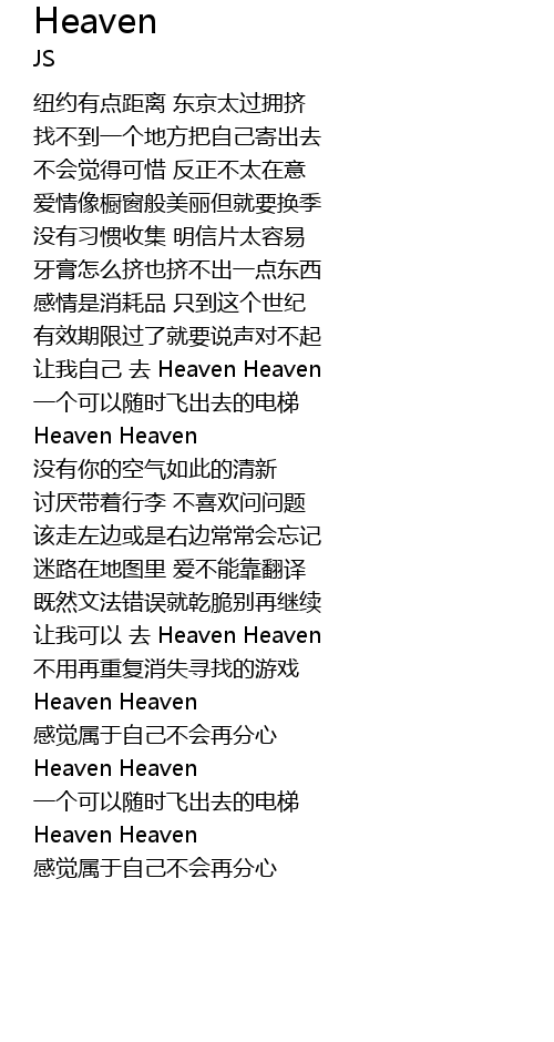 | [02:21.000] | 让我可以 去 Heaven Heaven |