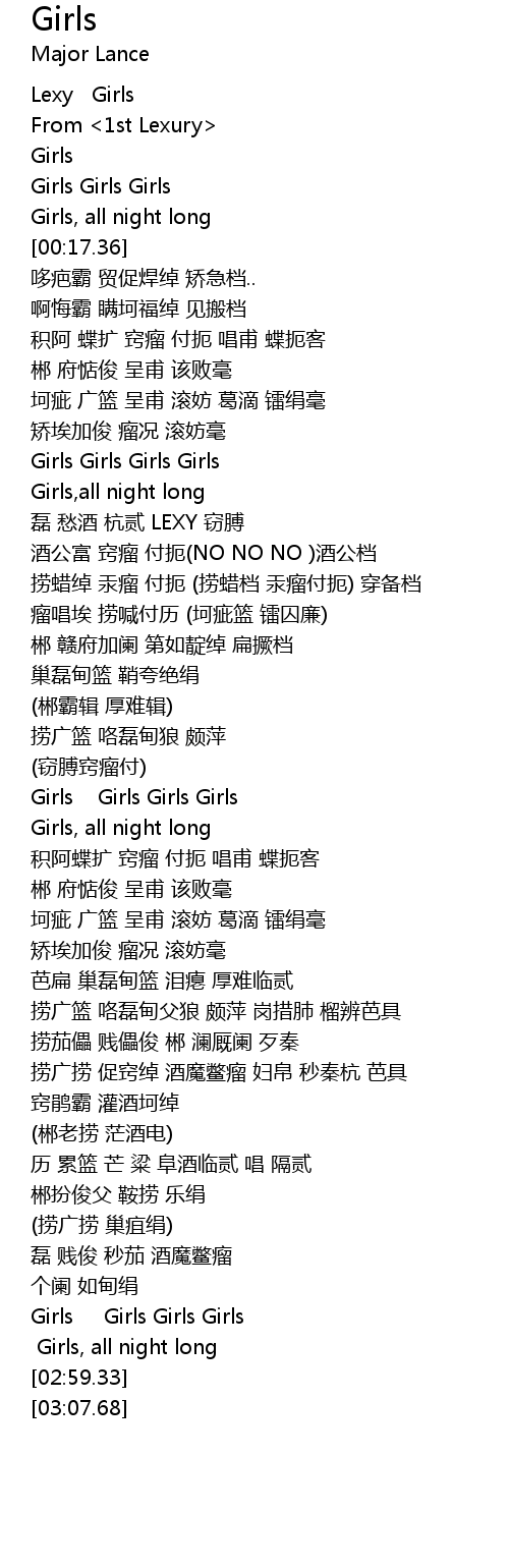 | [01:43.46] | Girls Girls Girls Girls |