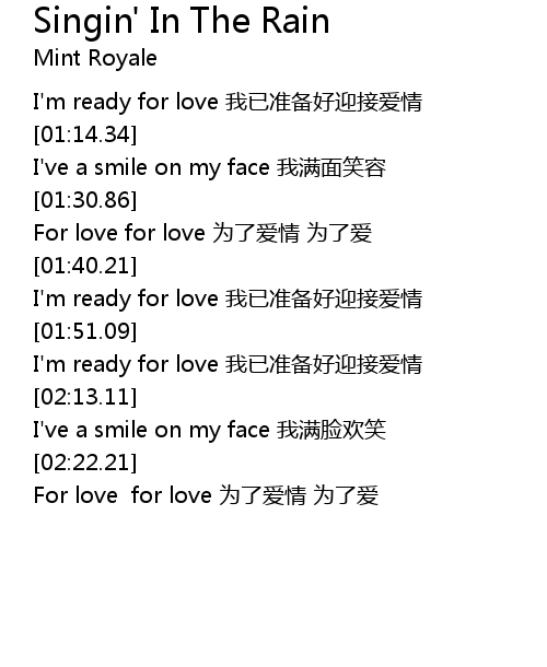 | [02:19.42] | I've a smile on my face 我满脸欢笑 |