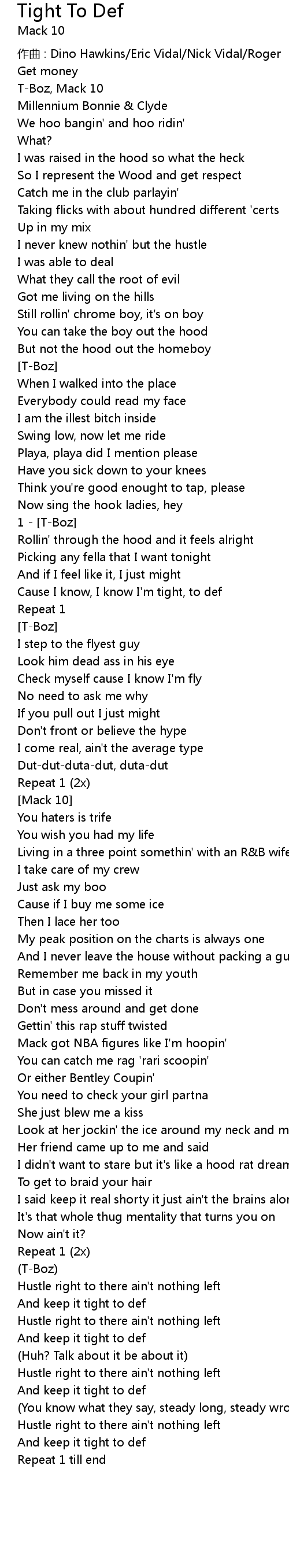 | 歌曲 | Tight To Def |
