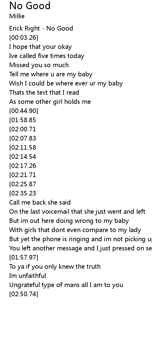 [03:41.18][02:25.87][01:12.78] Im no good (5x)