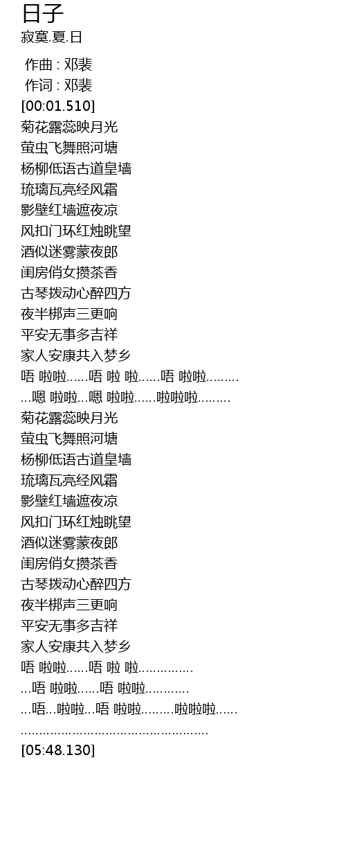| [04:23.800] | …唔 啦啦……唔 啦啦………… |