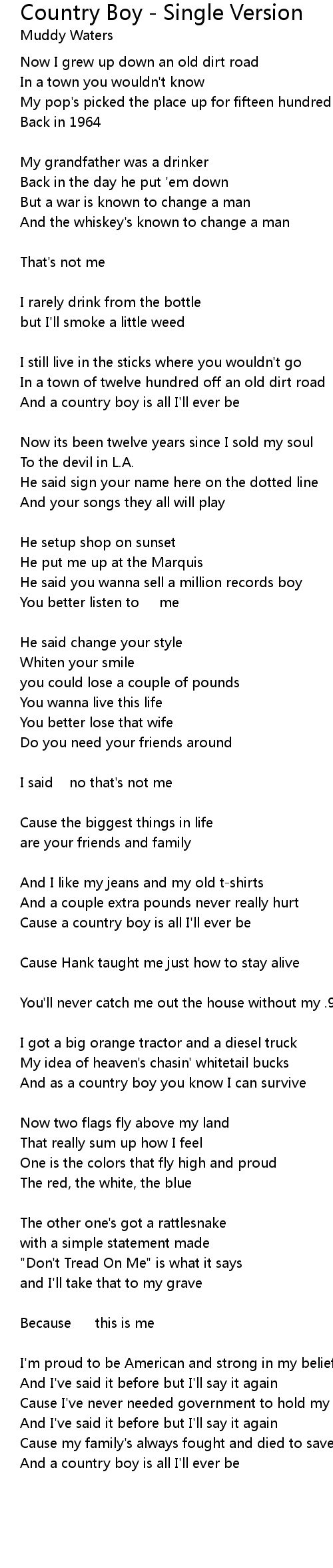 Country Boy - Single Version 歌词