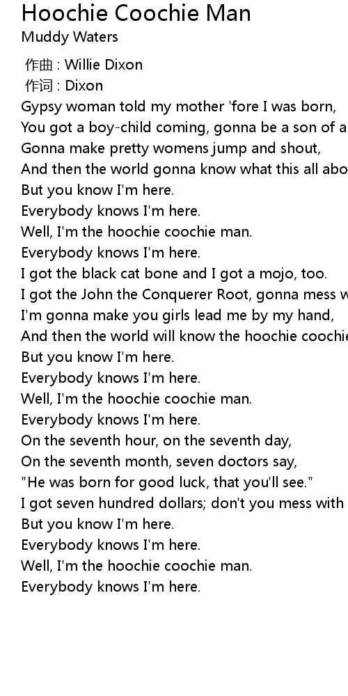 | [01:12.78] | And then the world will know the hoochie coochie man. |