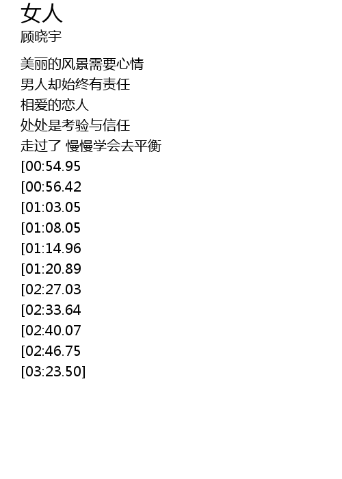 | [02:53.31][02:27.03][01:21.17] | xin ai de nv ren xin tou de wen cun |