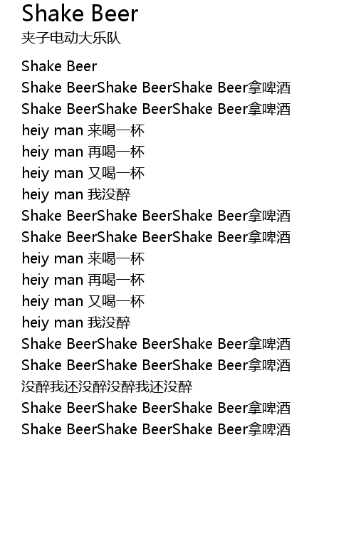 | [00:40.52] | Shake BeerShake BeerShake Beer拿啤酒 |
