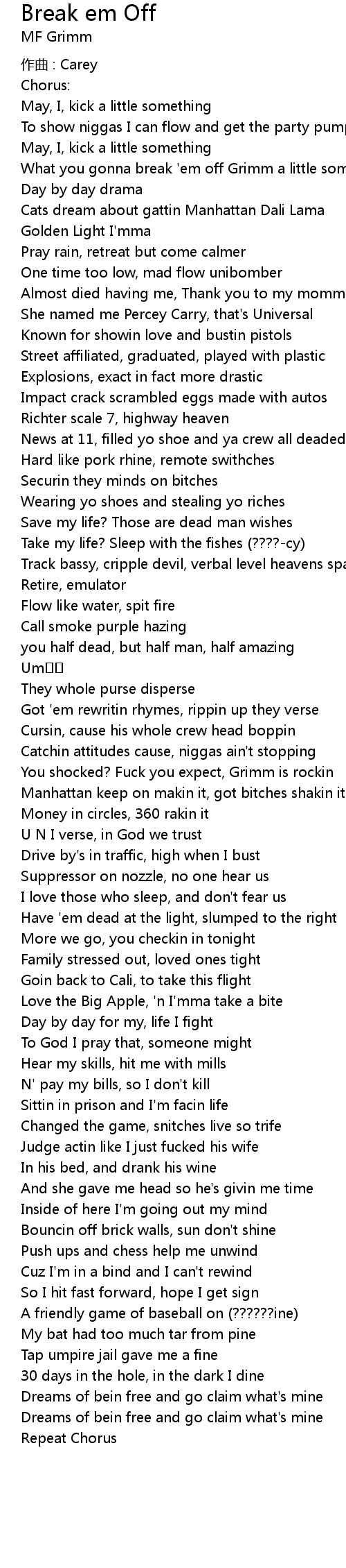 | 歌曲 | Break em Off |