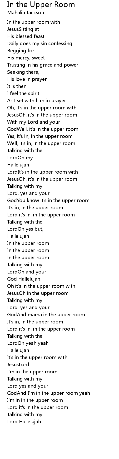 GodAnd I'm in the upper room yeah |