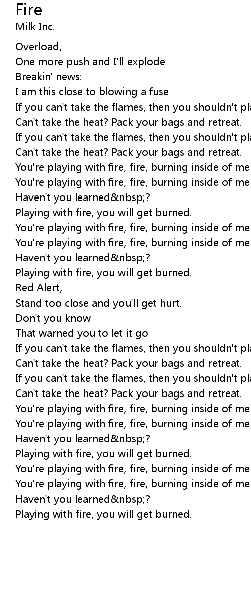 You're playing with fire, fire, burning inside of me |