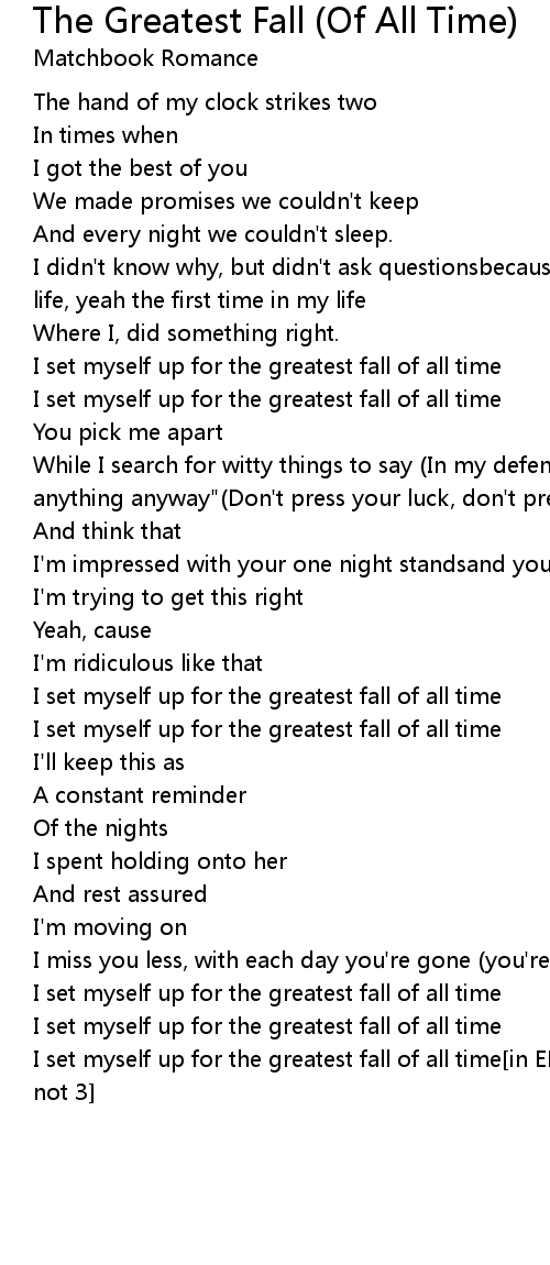I set myself up for the greatest fall of all time[in EP it is repeated 2 times, not 3]