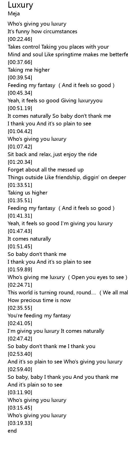 | [03:17.40] | Who's giving you luxury |