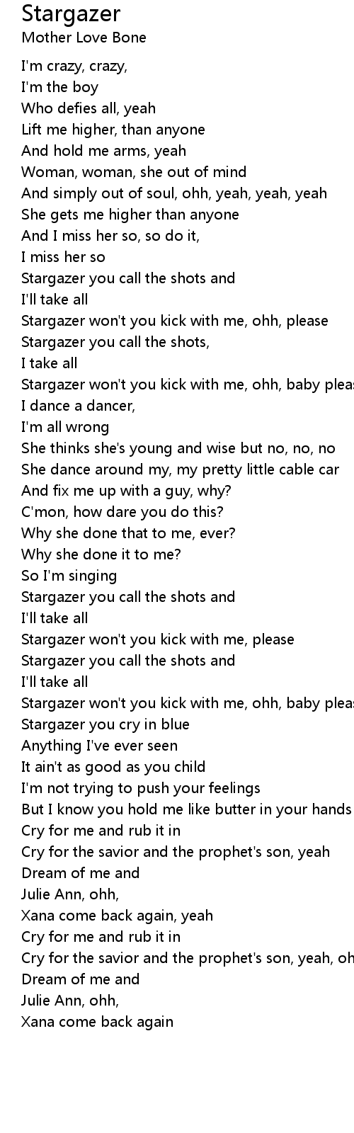 Stargazer won't you kick with me, ohh, baby please, tell you what? |