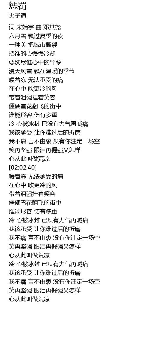 | [02:58.51] | 我该承受 让你难过后的折磨 |