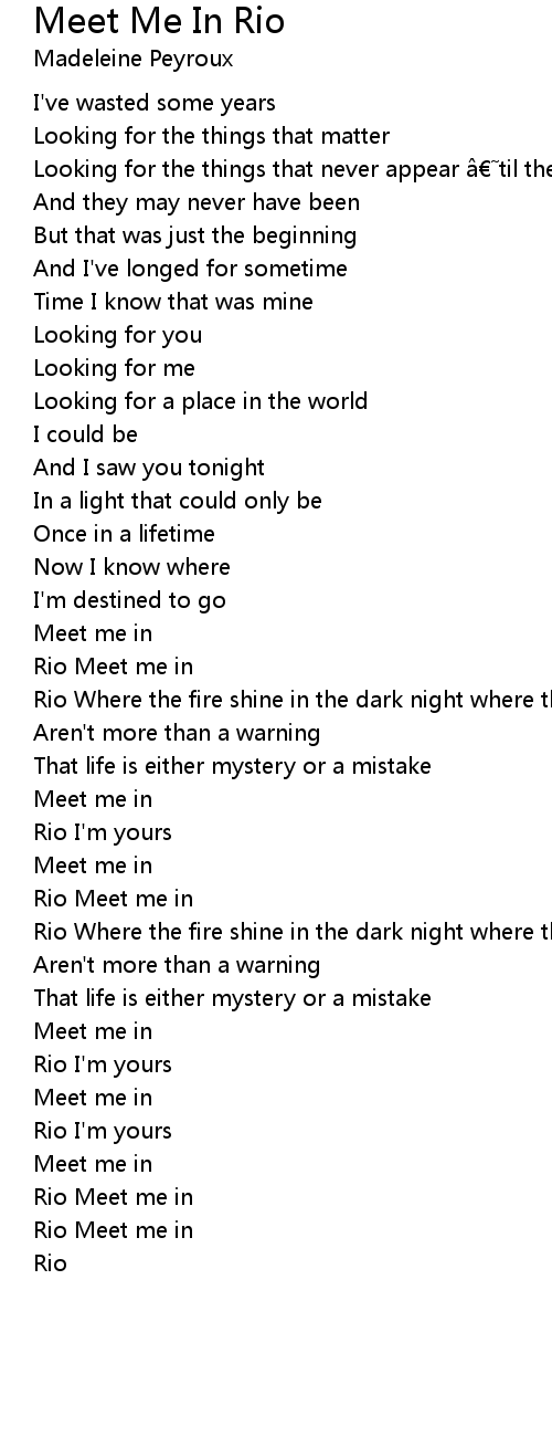 | Rio Where the fire shine in the dark night where the black lake and the morning | |