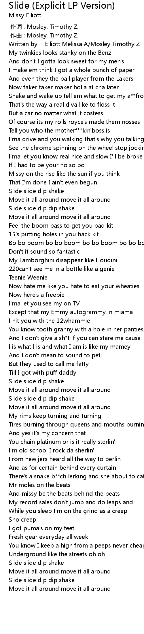 | 歌曲 | Slide (Explicit LP Version) |