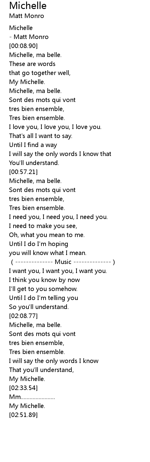 | [00:10.62] | Michelle, ma belle. |