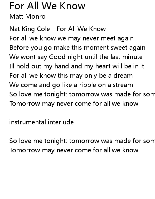 | Nat King Cole - For All We Know | |
