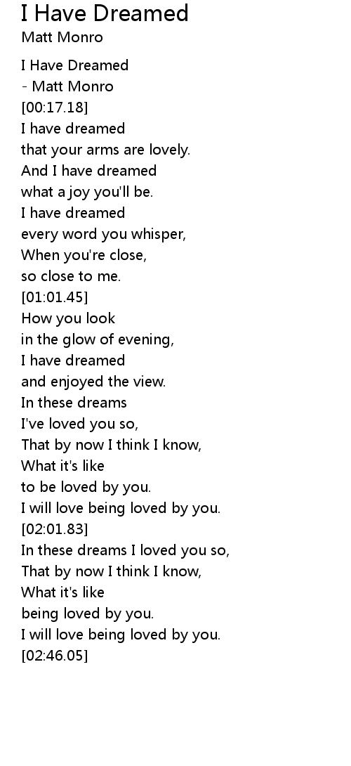 I Have Dreamed 歌词