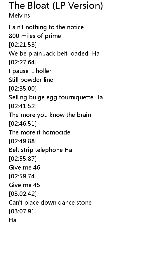 | [02:22.76] | We be plain Jack belt loaded Ha |