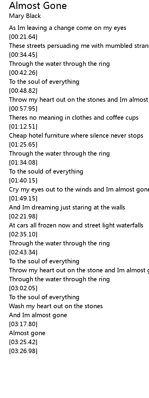 [00:50.39] Throw my heart out on the stones and Im almost gone