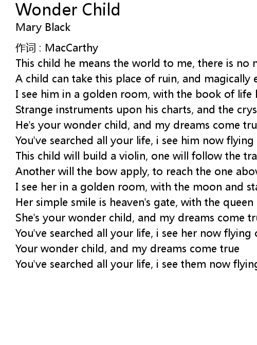 | Your wonder child, and my dreams come true | |