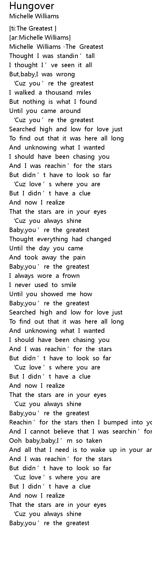 | [00:06.23] | Michelle Williams The Greatest |