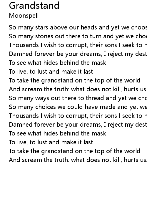 To take the grandstand on the top of the world |