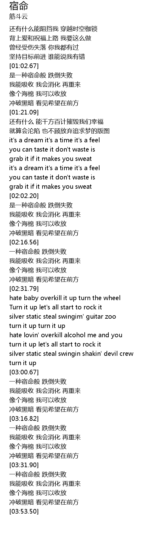 | [02:32.47] | hate baby overkill it up turn the wheel |