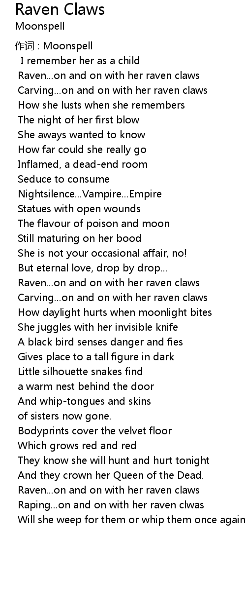 | Raven... on and on with her raven claws | |