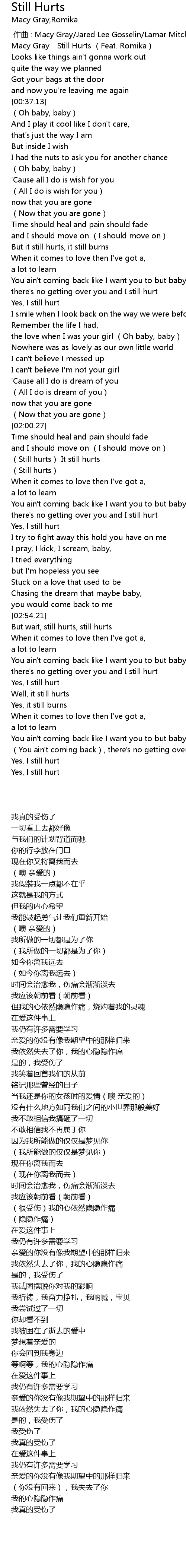 | [00:00.24] | Macy Gray - Still Hurts (Feat. Romika) |